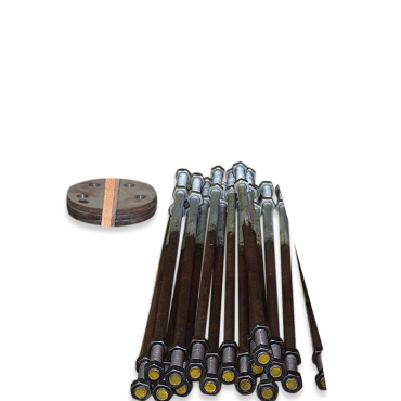 Sættet indeholder varmforzinkede fundamentsbolte samt nedstøbningsplader og møtrikker. Endvidere udlånes støbeskabelon til fiksering af boltene under støbearbejdet og et fundamentsforslag til almindelige jordbundsforhold.