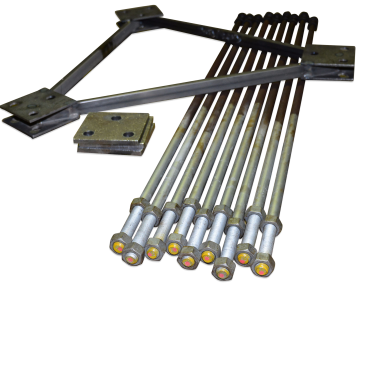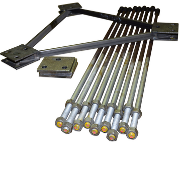 Sættet indeholder varmforzinkede fundamentsbolte samt nedstøbningsplader og møtrikker. Endvidere udlånes støbeskabelon til fiksering af boltene under støbearbejdet og et fundamentsforslag til almindelige jordbundsforhold.