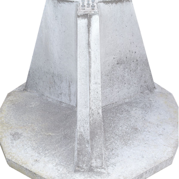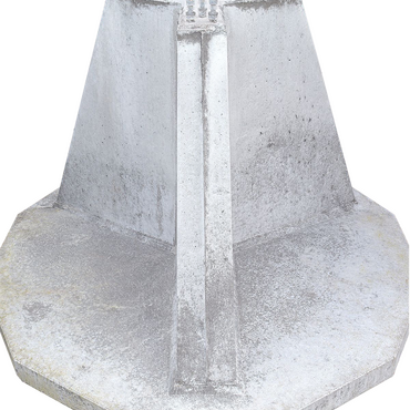 Betonfundament med indstøbte fundamentsbolte fremstillet til brug for trekantede standardsektioner.