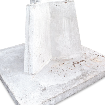 Betonfundament med indstøbte fundamentsbolte fremstillet til brug for trekantede standardsektioner.