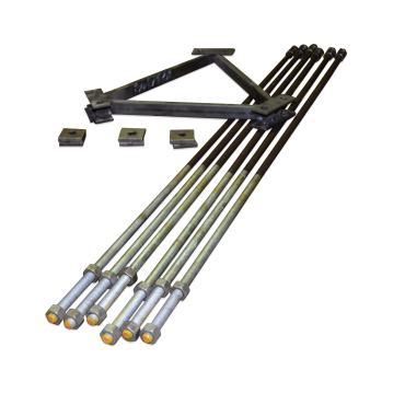 Sættet indeholder varmforzinkede fundamentsbolte samt nedstøbningsplader og møtrikker. Endvidere udlånes støbeskabelon til fiksering af boltene under støbearbejdet og et fundamentsforslag til almindelige jordbundsforhold.